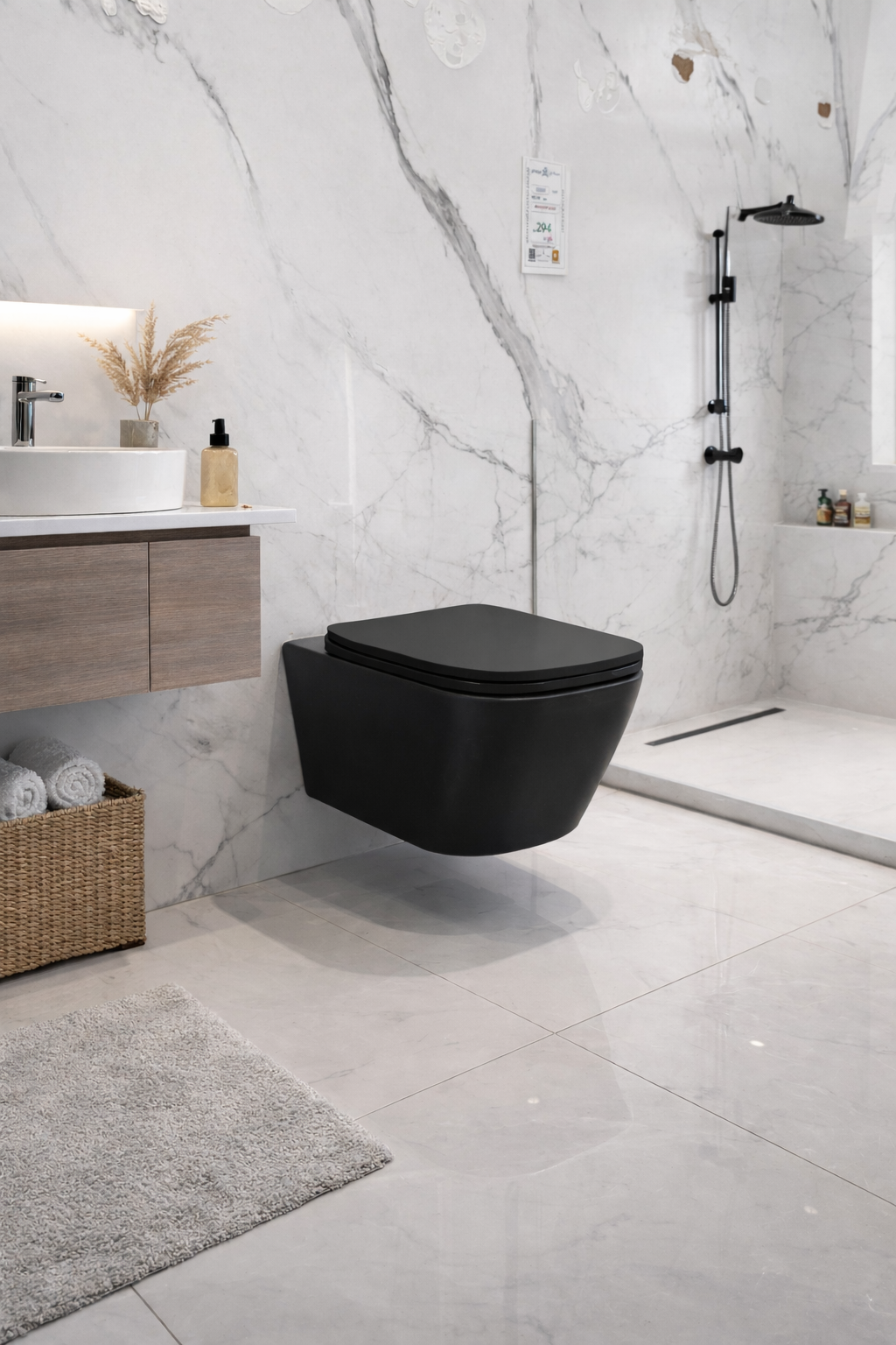 كرسي إفرنجي معلّق بتصميم مودرن يُعد خيارًا مثاليًا لمن يبحث عن الفخامة، العملية، وسهولة التنظيف في آنٍ واحد. يتميز هذا الكرسي بتصميم عصري أنيق يناسب الحمّامات الحديثة، سواء في المنازل، الشقق الفاخرة، الفنادق، أو المشاريع التجارية. الشكل الانسيابي والخطوط الناعمة يمنحان الحمام مظهرًا راقيًا ومنظمًا مع استغلال أفضل للمساحة.