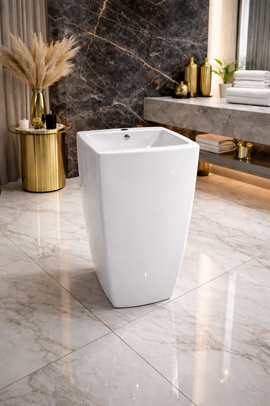 إذا كنت تبحث عن مغسلة تجمع بين الفخامة، الجودة، والتصميم العصري الملفت، فإن هذه المغسلة الواقف بزواياها الهندسية تعد خيارًا ممتازًا يرفع من مستوى ديكور حمامك ويمنحه طابعًا راقيًا يدوم طويلًا.