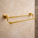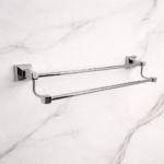 تم تصميم <strong>علاقة المناشف المزدوجة بأسلوب عصري يناسب كافة الأذواق. الألوان المتوفرة – الكروم اللامع، الأسود الأنيق، والذهبي الفاخر – تعكس جمالية ونقاء التصميم، مما يجعلها تتناسب مع جميع أنواع الديكورات الداخلية. سواء كنت تبحث عن لمسة ميتاليكية لامعة أو اللون الداكن الذي يضفي لمسة من الفخامة، توفر لك هذه العلاقة الخيار المثالي لإضافة لمسة من الأناقة إلى حمامك.