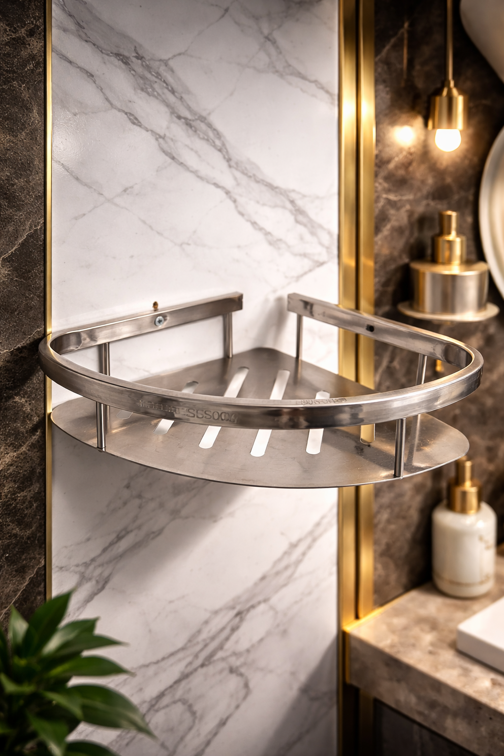 رف زاوية ستانلس ستيل SUS304 فاخر – حامل حمام جداري مودرن بتصميم أنيق مقاوم للصدأ