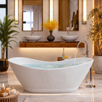 8 مراجعات لـ بانيو زاوية مودرن فاخر – تصميم انسيابي أبيض عالي الجودة