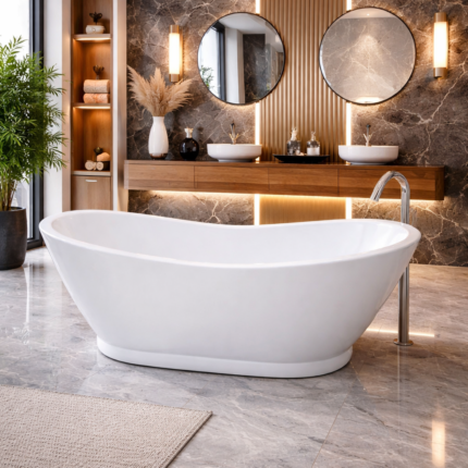 يُعد هذا البانيو خيارًا مثاليًا للمنازل الحديثة، الشقق الفاخرة، أو حتى المشاريع التجارية مثل الشقق المفروشة والفنادق، حيث يعطي انطباعًا راقيًا يعزز من تجربة المستخدم. كما يمكن تنسيقه بسهولة مع خلاطات بانيو كروم أو أسود مطفي لإكمال الشكل الجمالي النهائي.
