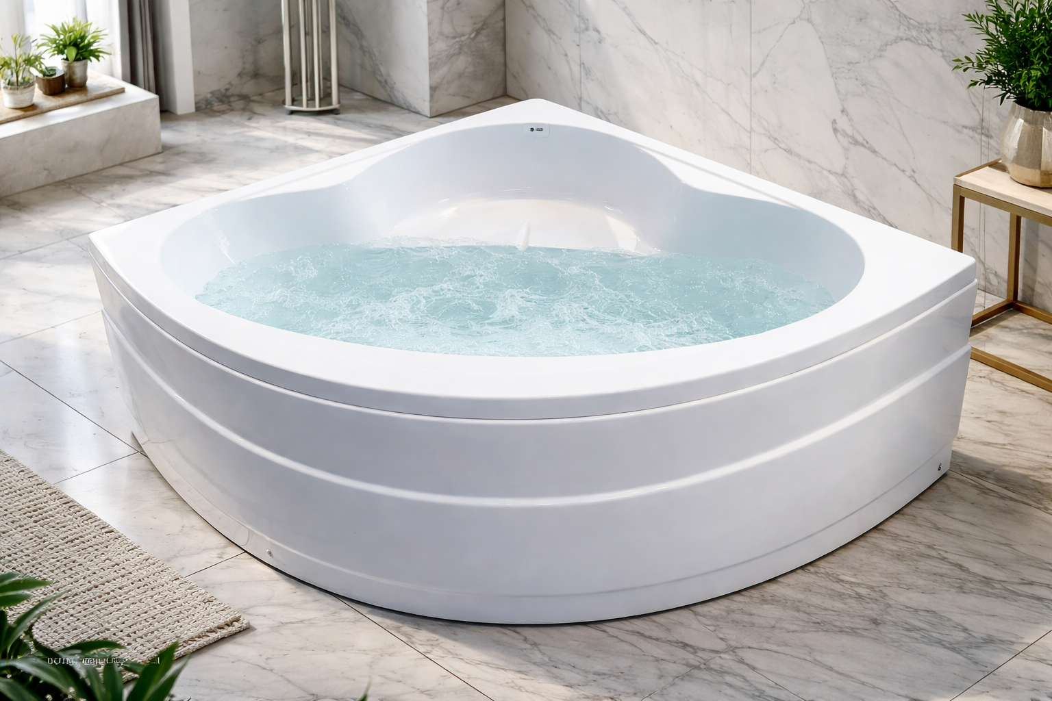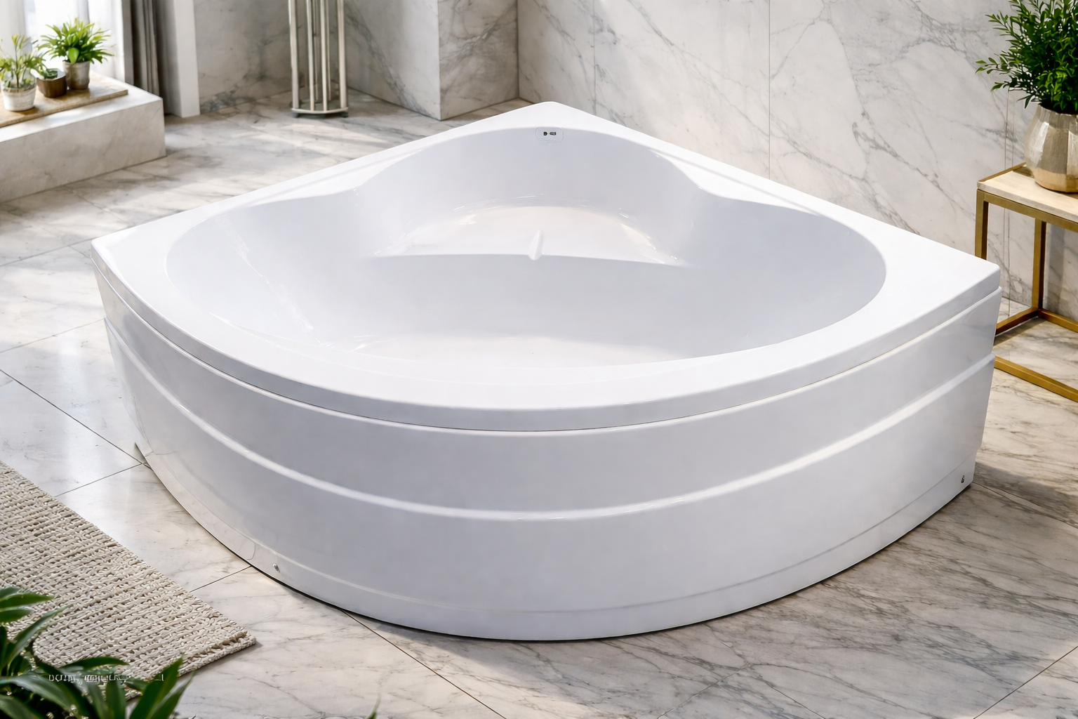 بانيو زاوية مودرن فاخر – تصميم انسيابي أبيض عالي الجودة