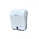 موزع المناديل التلقائي الظاهر في الصورة هو من ماركة ORISA، ويتميز بتصميم عصري وانسيابي بلون أبيض نقي يضفي لمسة نظافة ورقي على أي مساحة يُستخدم فيها. الغلاف الخارجي مصنوع من مواد بلاستيكية عالية الجودة مثل ABS المقاوم للصدمات والرطوبة، ما يجعله مناسبًا للبيئات الرطبة كدورات المياه.