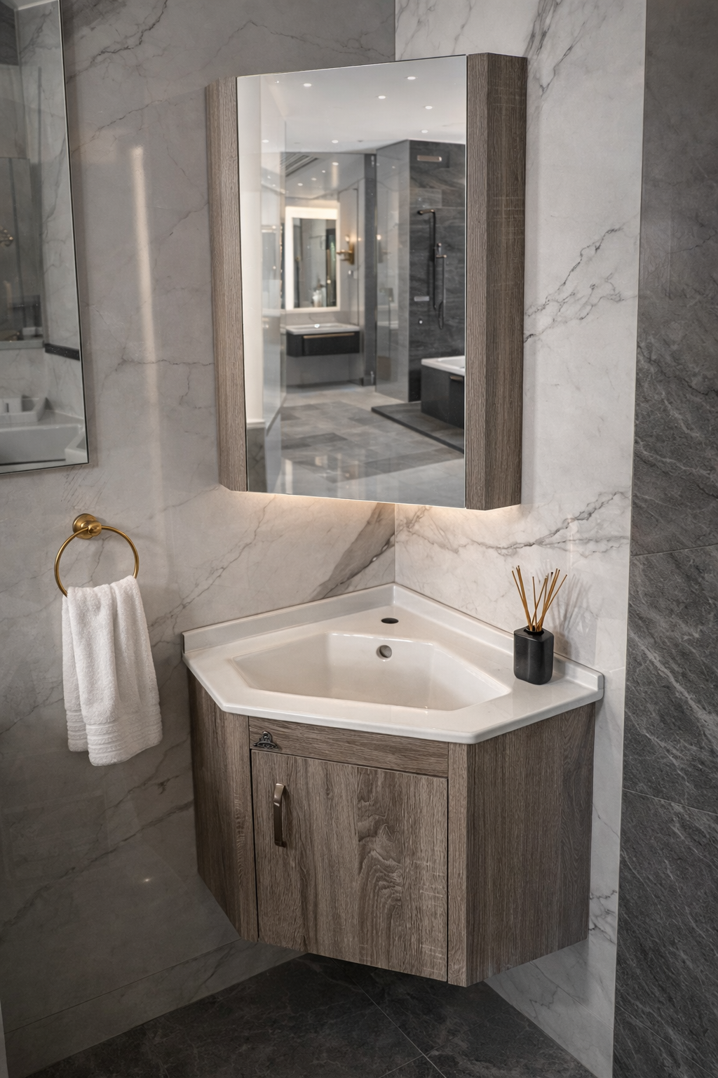 بفضل تصميمها الذكي، تسهم هذه المغسلة في استغلال المساحات الصغيرة بشكل أكثر كفاءة. على سبيل المثال، يمكنك وضعها في الزوايا أو المساحات الضيقة دون أي عناء. علاوة على ذلك، توفر مرآة صيدلية مدمجة مساحة عملية لتنظيم أدوات العناية الشخصية، مما يجعلها مثالية لحمامك اليومي.