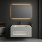 - تصميم عصري وألوان أنيقة: تتميز مغاسلنا بالألوان الحيادية الجذابة مثل الأسود والأبيض والرمادي، مما يجعلها تتناغم مع جميع ديكورات الحمام. الإضاءة الخلفية للمرايا تُضيف لمسة عصرية، وتوفر إضاءة ناعمة مثالية وتضيف على الحمام إحساسًا بالهدوء.