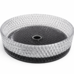 تم تصنيع مغسلة كريستال بلاك دايموند من زجاج سميك مقاوم للرطوبة والحرارة، مما يضمن عمر استخدام طويل وثباتاً في الجودة مع مرور الوقت. السطح الداخلي الأملس يساعد على سهولة تصريف المياه ويمنع تراكم الأوساخ والترسبات، مما يجعل التنظيف سريعاً وبسيطاً دون مجهود.